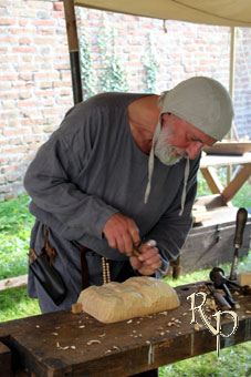 vielerlei von unserem Handwerk zeigen und erklären. Elsa nadelte, Emma sponn, Huno punzierte, Len schnitzte, Cilia webte, Jane flocht, Arjen hackte, Jörg schmiedete und Ava färbte.