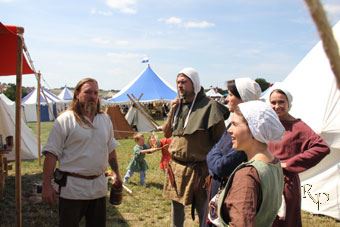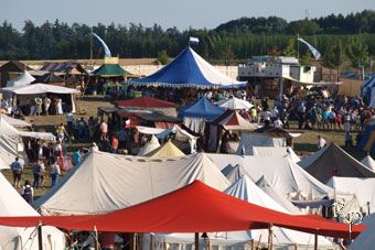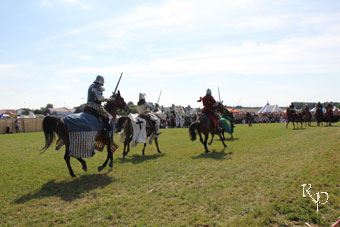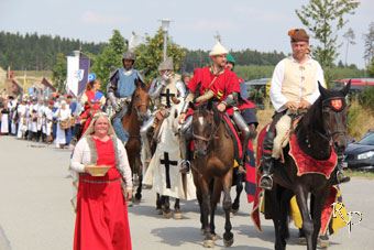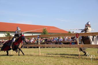 700 Jahre Schlacht bei Gammelsdorf - welch besonderes Ereignis, da diese Feier nur alle 50 Jahre statt findet. Wir waren schon sehr gespannt was uns erwarten würde und freuten uns auf 6 Tage Lagerleben mit der Rusti-Familie. Als wir ankamen, erwartete uns bereits eine stattliche Zeltstadt und viele fleissige Leute, die emsig mit dem Aufbau beschäftigt waren. Die Stunden vergingen und der Marktbereich wuchs und verwandelte sich in einen riesigen Mittelaltermarkt. Auch nebenan, im Festzelt und dem Platz davor, wurde mit viel Arbeit ein schöner Bereich zum Feiern geschaffen. Wir genossen den ersten Abend in diesem tollen Ambiente und freuten uns schon sehr auf die Festeröffnung ![]() ![]() bis .. ja bis der gesamte Festplatz am frühen Morgen um 6.53 Uhr durch die laut vernehmliche Übungsstunde eines Schlagzeugers geweckt wurde. Bald war überall Geraschel zu hören und kurz danach erwachte das Marktgelände zum Leben. Die 10. Stund hatte geschlagen und die Tore wurden geöffnet - das große Fest um die Schlacht bei Gammelsdorf von 1313 hatte begonnen. Der Wettergott hatte es das ganze Wochenende sehr gut mit uns allen gemeint und wir genossen die Festtage bei Sonnenschein sehr. Einen beeindruckenden Sonnenbrand durften wir bereits am ersten Tag begrüssen. Jeden Tag am Nachmittag fand die Schlacht mit Kämpfern zu Fuss und zu Pferde statt, an der sich viele der Lagerleute beteiligten. Schwertkämpfer, Bogenschützen, Trossfrauen, .. sie alle zeigten den Zuschauern, wie die Schlacht zwischen den Habsburgern und Wittelsbachern gewesen hätte sein können und warum wir heute Bayern und nicht Österreich sind. Wir Rustis, da nunmal Nicht-Kämpfer, sorgten dafür, dass die Besucher nur dort zum Kampfgelände kamen, wo sie auch hin durften und sperrten Teile ab, wenn Kämpfer und Pferde einzogen. ![]() ![]() Etwas später am Nachmittag richteten die Societas Equestris ein tägliches IJL- Sportturnier aus, dessen Wertung in die Gesamtwertung der IJL (Internationale Tjost Liga) einging. Es gab sogenannte Skills at Arms Tuniere (Geschlichkeitstest) und zusätzliche Turniere mit Lanzen, bei denen nur tatsächliche Treffer Punkte brachten. Die Reiter kamen aus Italien, Polen, Belgien Australien und Deutschland. ![]() ![]() Neben Musik aus dem Bierzelt (z.B. die Cuba Boarischen oder am Freitag beim Ritteressen Totus Gaudeo), sorgten Jolandolo vom Birkenschwamm, Gaukeley Links Zwo Drei, Historia Perita, Adictum, Bordunitas und SkalTrian für Unterhaltung auf dem Marktgelände. ![]() ![]() Überall auf dem Markt lagerten liebe Freunde und Bekannte, direkt gegenüber genossen wir die Gesellschaft z.B. von Igni et Ferro, nebenan von Amici Ordo Teutonicus, etwas weiter oben von Varkuchel, ... ![]() ![]() Wir hatten sehr viel Spass, machten mit Kiepe und Sonnenhut einen Ausflug in die Neuzeit, als wir bei einem Geschäft einkehrten, lachten, führten den sehr interessierten Besuchern Handwerk vor, hielten viele, lange, lustige und interessante Gespräche, liessen Michi Verspannungen wegzaubern, genossen das Beisammensein und die tolle Zeit mit unserer Gruppe. Auch kamen uns einige Freunde besuchen und schauten "hinter die Kulissen" des Lagerlebens. ![]() ![]() Am Sonntag fand noch nach der Feldpredigt durch Kardinal Karl Marx und der Ansprache von Ministerpräsident Horst Seehofer der große Festumzug mit vielen Vereinen aus Nachbargemeinden und natürlich auch mittelalterlichen Gruppen statt. ![]() ![]() Als Abschluss verzauberte ein grosses Feuerwerk den Abendhimmel und tauchte ihn in bunte Farben, das wir von unserem Platz aus super bestaunen konnten. ![]() ![]() Kurzgefasst: Es war ein tolles Wochenende, ein super Fest und wir werden dieses, nur alle 50 Jahre stattfindende Ereignis in sehr guter Erinnerung behalten. Wir möchten uns noch einmal bei der Organisation und allen Gammelsdorfern bedanken. ![]() Pressefotos und Videos: Artikel Merkur online Artikel Merkur Online Hallertau Info Moosburg Info Moosburg Info Isar TV Video auf YoutTube Galerie zur Schlacht bei Gammelsdorf 2013 |