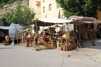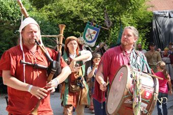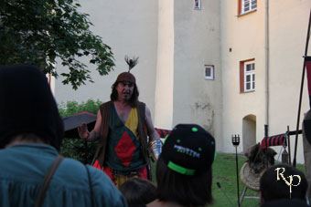 Es war an der Zeit (13. - 15.06.14) nach Stein a. d. Traun aufzubrechen und das Gelände vor der sagenumwobenen Höhlenburg Stein zu beleben. Wir waren im Dezember 2013 noch zum Adventsmarkt hier und freuten uns sehr auf eine Rückkehr an diesen schönen Ort. Wir hatten ein wunderschönes Fleckchen Erde direkt vor dem Internat zu belagern, umgeben von lieben Freunden und in Hör- und Sehweite der großen Bühne. Nachdem es der Wettergott im letzten Jahr nicht wirklich gut meinte, wurden wir im Jahre 2014 von Sonne und blauem Himmel verwöhnt. Das zog nicht nur die Mittelaltergemeinde nach Stein, sondern auch viele interessierte Besucher. ![]() Ein gar erstklassiges Programm ward geboten. Für Gänsehaut sorgten die zarten Klänge von Poeta Magica mit Saga, Nachtwindheim und die Streuner verursachten unglaublich gute Laune und brachten Bewegung in die Menschenmengen, ein grosses Konzert gaben Corvus Corax und Peter von der Herrenwiese erfüllte auch jenseits der Bühnen die Luft mit Minnegesang. ![]() ![]() Für allerlei Kurzweil, Gelächter und auch Anmut zeigten Jolandolo vom Birkenschwamm, Adictum, Historia Perita, die königl. bay. Feuerspuckerey und Mediva ihr Können. Diese boten am Freitag Abend auch die grosse Feuershow, die das Publikum in ihren Bann zog. Puppenspiele konnten beim Kistler und seinem Weib bestaunt werden, während Magicus Solvius das Spiel mit den Kugeln vorführte. Die vielen Kinder konnten sich zudem bei Magarete, der Märchenerzählerin, mit Geschichten aus längst vergangenen Tagen in das Reich der Phantasie leiten lassen, während teatro Solemia auf ihren Stelzen das Gelände belebte. Eine Kampfshow der besonderen Art sowie eine Vorführung des Kampfes mit dem Feuer zeigten Burdyri. ![]() ![]() Die Rustis liessen sich natürlich auch nicht die Gelegenheit entgehen, mehr über die Geschichte der Höhlenburg zu erfahren. Tief führte der Weg durch die engen, teils dunklen Gänge der Burg. Dabei erfuhren wir neben der Geschichte der Burg auch die Sage von einem besonderen Mann. Besonders war er allerdings nicht aufgrund seiner guten Taten... Heinz vom Stein war sein Name und ebenso mystisch wie die Burg an sich, soll auch sein Leben gewesen sein. Von Krankheit und Kampf entstellt, soll er sich die Abgeschiedenheit zu einem besonderen Zweck zu Nutze gemacht haben. Seine Opfer waren neben den Leuten aus dem Volk auch vor allem Bauerntöchter, die "keiner vermisste". Denn aufgrund seines Aussehens war es ihm unmöglich geworden, die Frauen auf "natürlichem Wege" zu betören. Mystisch, gruselig, teils beängstigend und doch so faszinierend waren die Geschichten um einen Mann, der vor keiner grausigen Tat zurück schreckte. Nach der Erzählung genoss er dies sogar noch in vollen Zügen. Aber seht und hört lieber selbst... ![]() ![]() Es war ein wundervolles Wochenende. Wir zeigten viel Handwerk, sprachen mit interessierten Besuchern, genossen die Stunden mit vielen lieben Freunden (z.B. Fenriskrieger, Kathleen, Wolfgang, Paul, Chris, sein Team, dem Munkler, .. es wären noch sooo viele zu nennen). Wir sagen Danke und freuen uns auf die nächsten tollen Feste, die folgen werden. ![]() Galerie zum Burgfest Stein a. d. Traun 2014 |