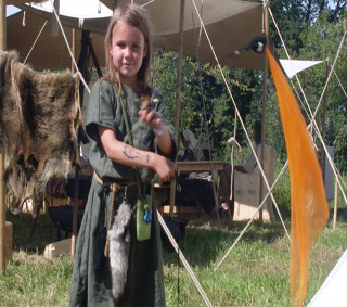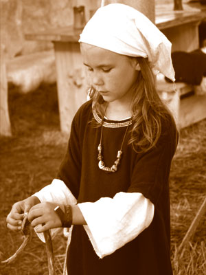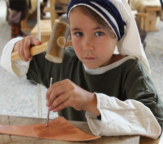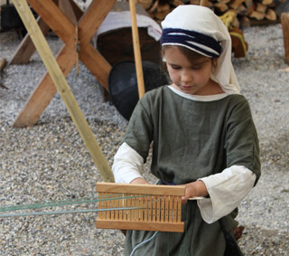 Gerne übe ich mit meinem Papa das punzieren von Leder oder probiere mich im Nadelbinden und Kammweben,